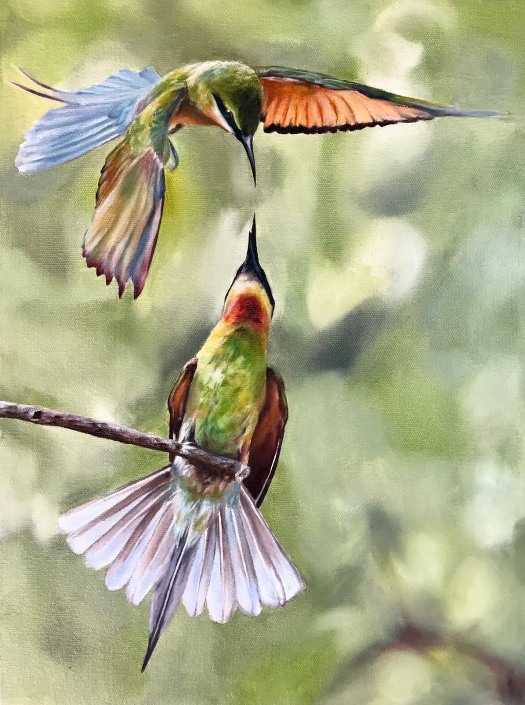 Hello, my name is Anna. I create hyperrealistic paintings that focus on the vibrant color of life. The nature of light is my inspiration found in ordinary and spectacular moments alike. Using oil paints I build up layers to create vibrance and depth, aiming to evoke a sense of beauty and life in each piece. I’ve been refining my craft for around 5 years. When I’m not in my South African studio, I can often be found hiking in the mountains, finding the natural inspiration that grounds my practice.